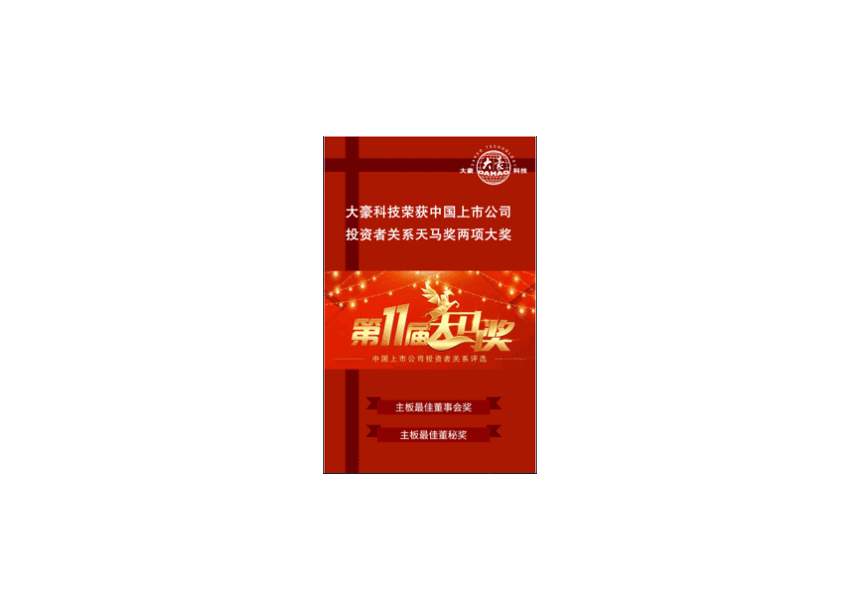 • 荣获“第11届中国上市公司投资者关系天马奖”最佳投资者关系董事会奖、最佳投资者关系董秘奖