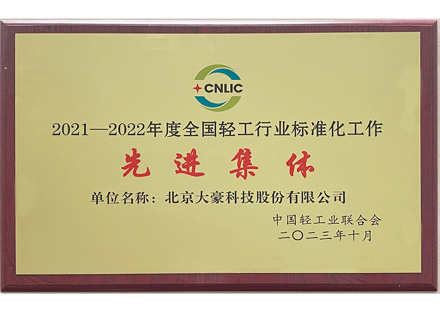 • 2021-2022年度全国轻工行业标准化工作先进集体牌匾